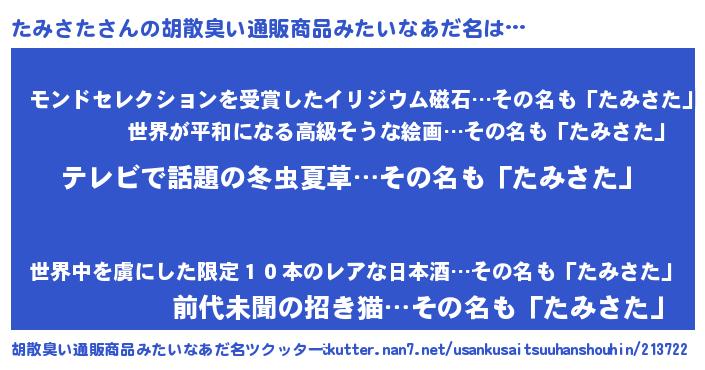 | 意味不明あだ名 | 『自称たみさた』『めかぶ科たみさた属』 |