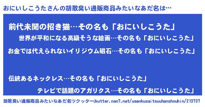 | 料理風あだ名 | 『おにいしこうたごはん』 |