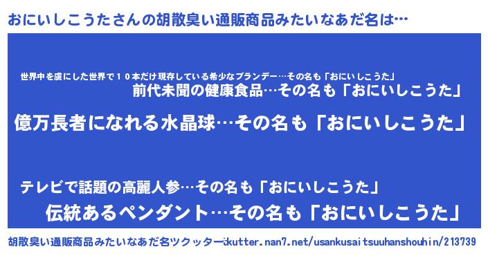 | 意味不明あだ名 | 『ペロリンおにいしこうた』 |