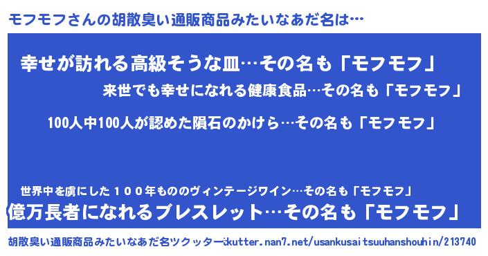 | 恥ずかしいあだ名 | 『ボンバーヘッドモフ』『モフっちょ』 |