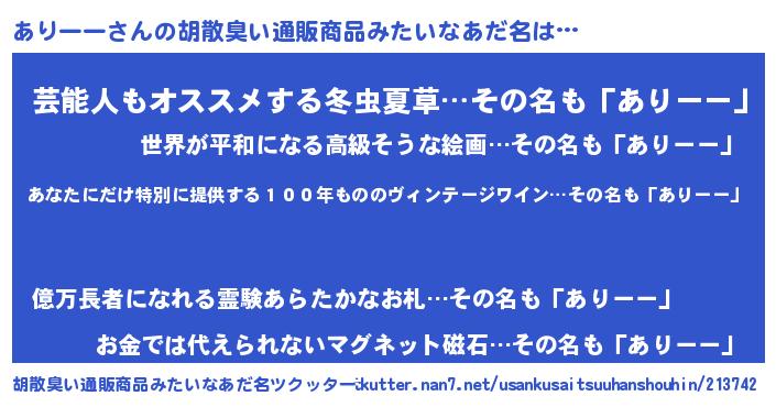 | 意味不明あだ名 | 『住所不定無職ありーー(5歳)』 |