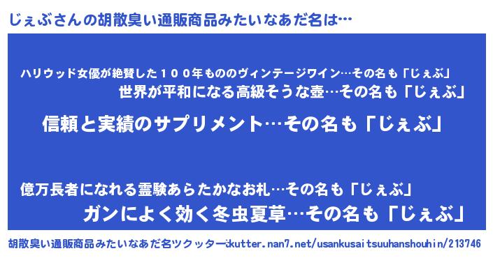 | 意味不明あだ名 | 『とにかく怪しいじぇぶ』『自称じぇぶ』 |