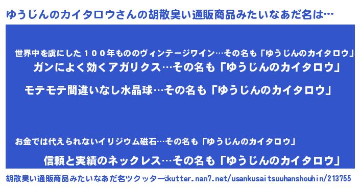| ヒーロー風カッコイイあだ名 | 『スーパーユウジンノカイタロウ』 |