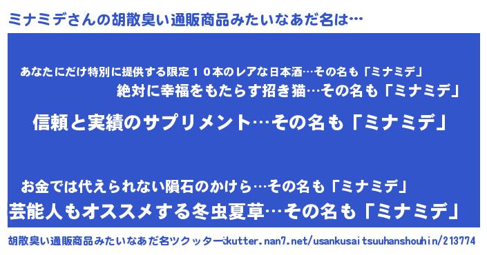 | 意味不明あだ名 | 『とにかく怪しいミナミデ』 |