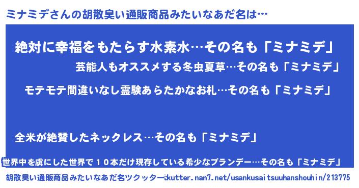 | ヘコむあだ名 | 『ミナもー』『ミナミデ(震え声)』 |