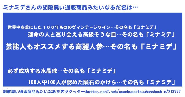 | ヒーロー風カッコイイあだ名 | 『究極戦士ミナミデ』『仮面ミナダー』 |