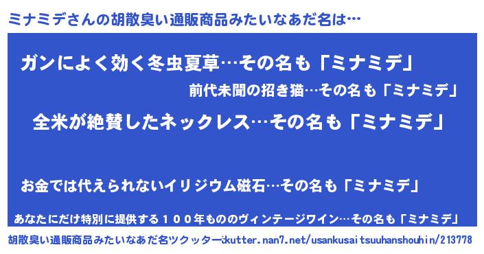 | ヘコむあだ名 | 『ミナっ子』『ミナミデ(遠い目)』 |
