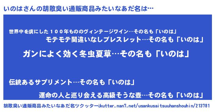 | 意味不明あだ名 | 『自称いのは』『住所不定無職いのは(4歳)』 |