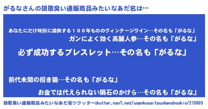 | ヘコむあだ名 | 『がるふぇ~』『がるな(笑)』 |