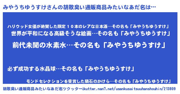 | 可愛いあだ名 | 『みやうちゆうすけママ』『ぽよみや』 |