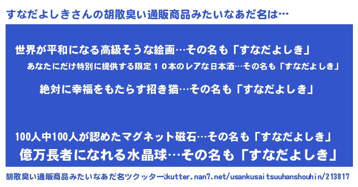 | 意味不明あだ名 | 『永久保存すなだよしき』 |