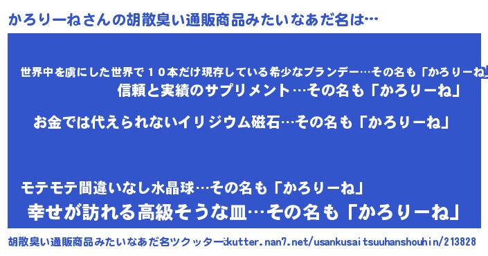 | ヒーロー風カッコイイあだ名 | 『愛の使者かろりーね』『仮面カロダー』 |