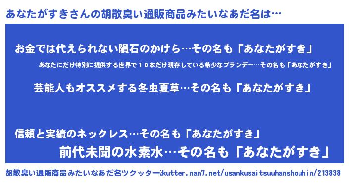 | ヒーロー風カッコイイあだ名 | 『最強戦士アナタガスキ』『仮面アナダー』 |