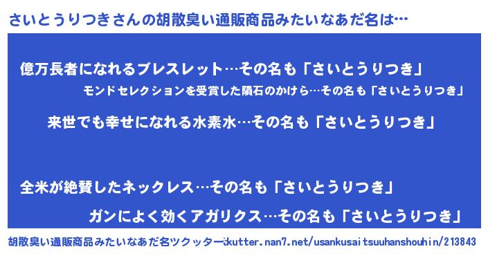 | ヘコむあだ名 | 『さいとうりつき(震え声)』『さいふぇ~』 |