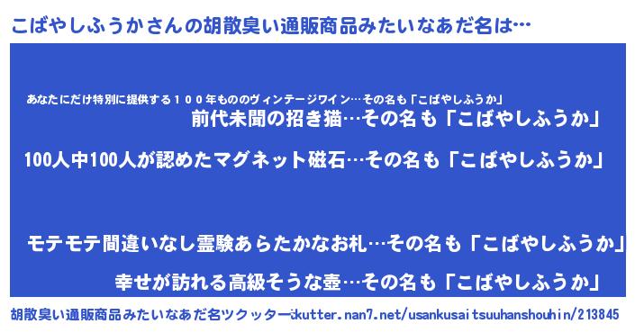 | 意味不明あだ名 | 『眠気覚ましガムこばやしふうか味』 |