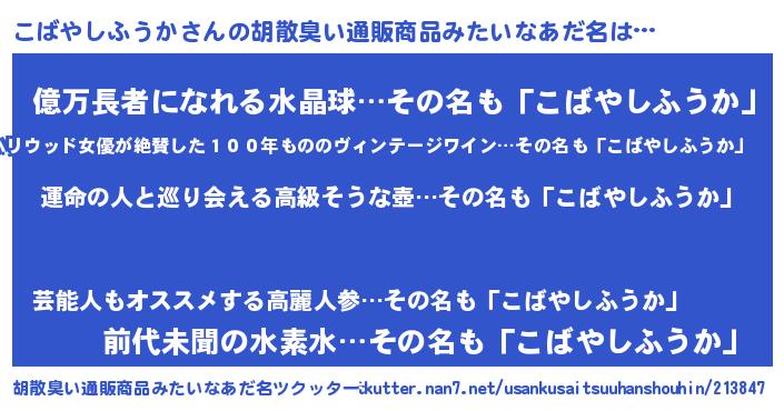 | 意味不明あだ名 | 『こばやしふうかフォーエバー』 |