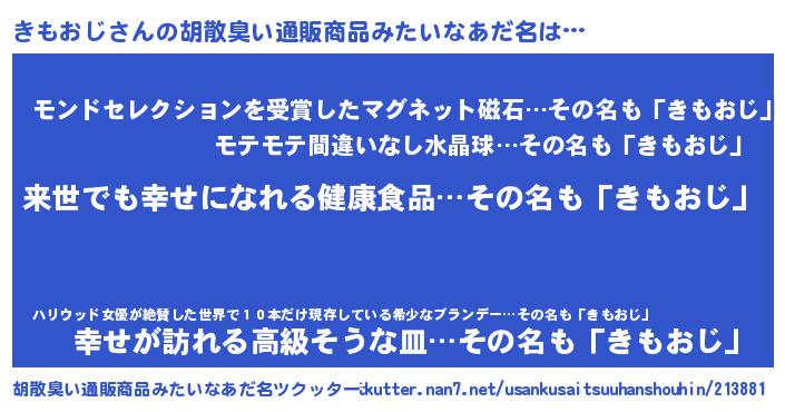 | 意味不明あだ名 | 『永久保存きもおじ』『ペロリンきもおじ』 |