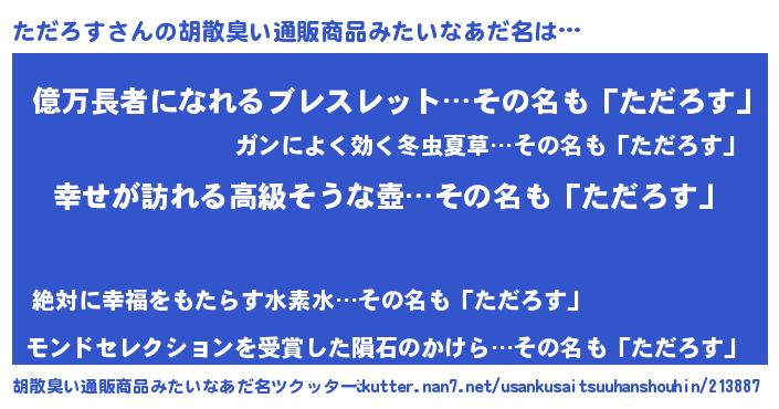 | 肩書あだ名 | 『ただろす大統領』『ただろす御曹司』 |
