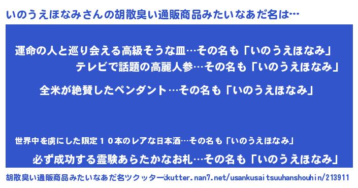 | 意味不明あだ名 | 『とにかく怪しいいのうえほなみ』 |