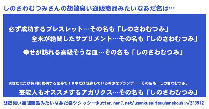 | 料理風あだ名 | 『しのさわむつみごはん』 |