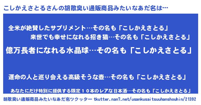 | ヒーロー風カッコイイあだ名 | 『スーパーコシカエサトル』 |