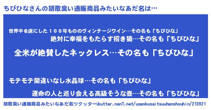 | 意味不明あだ名 | 『とにかく怪しいちびひな』 |
