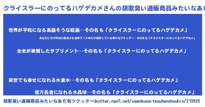 | 意味不明あだ名 | 『ニラ科クライスラーにのってるハゲデカメ属』 |