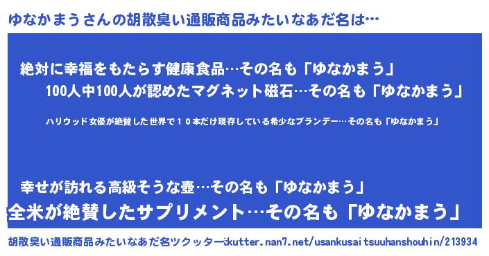 | 意味不明あだ名 | 『住所不定無職ゆなかまう(91歳)』 |