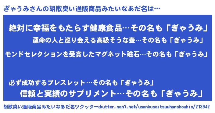 | ヒーロー風カッコイイあだ名 | 『天空の使者ぎゃうみ』『ネオギャウミ』 |