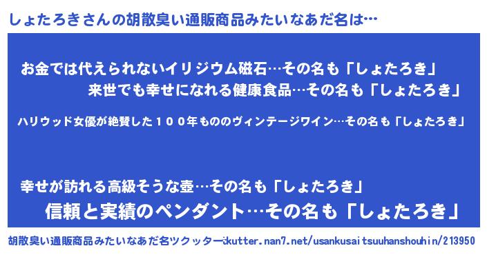 | ヘコむあだ名 | 『しょお』『しょたろき(遠い目)』 |