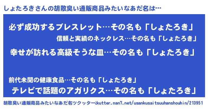 | 女子向けラノベタイトル風あだ名 | 『しょたろきの雑貨屋さん』 |