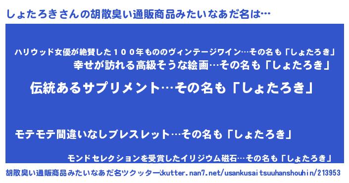 | 欧米人風あだ名 | 『ウサインしょたろき』 |