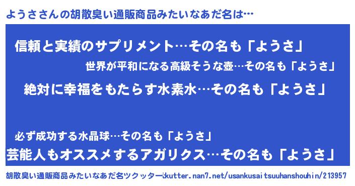 | ヘコむあだ名 | 『ようさ(遠い目)』『ようっ子』 |