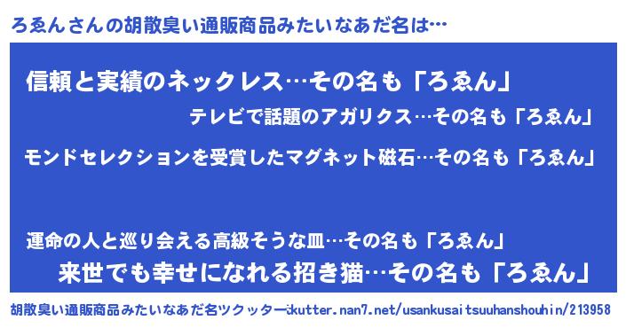 | 意味不明あだ名 | 『眠気覚ましガムろゑん味』『自称ろゑん』 |