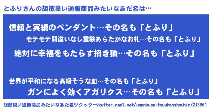 | 意味不明あだ名 | 『永久保存とふり』『自称とふり』 |