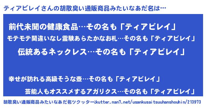 | 可愛いあだ名 | 『テっィぃー』『ティアビレイママ』 |