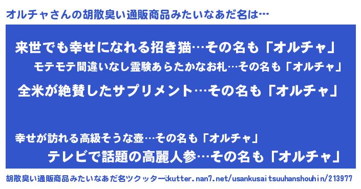 | 意味不明あだ名 | 『ヨモギ科オルチャ属』『自称オルチャ』 |
