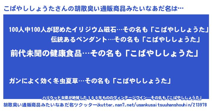 | ヘコむあだ名 | 『こばやししょうた(爆)』『こばっ子』 |