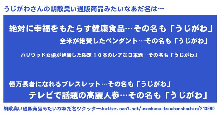 | ヘコむあだ名 | 『うじがわ(爆)』『うじお』 |