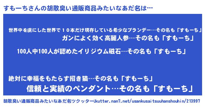 | ヒーロー風カッコイイあだ名 | 『正義の使者すもーち』『仮面スモダー』 |