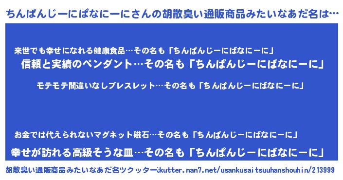 | 欧米人風あだ名 | 『マイケルちんぱんじーにばなにーに』 |