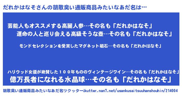 | 肩書あだ名 | 『だれかはなそ助教授』『だれかはなそCEO』 |