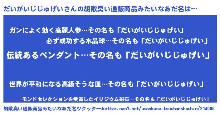 | 意味不明あだ名 | 『とにかく怪しいだいがいじじゅげい』 |