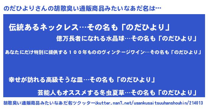 | ヘコむあだ名 | 『のだお』『のだもー』『なまこ酢』 |