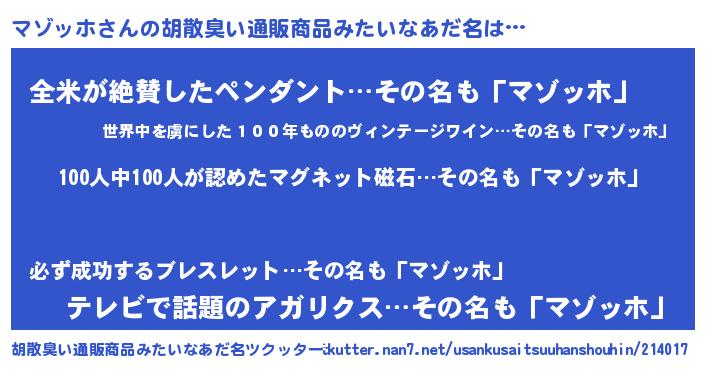 | ヘコむあだ名 | 『マゾを』『マゾっふぃ~』 |