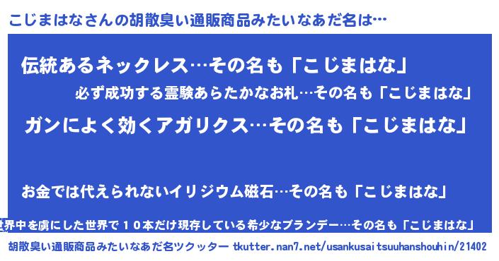 | 意味不明あだ名 | 『自称こじまはな』『ペロリンこじまはな』 |