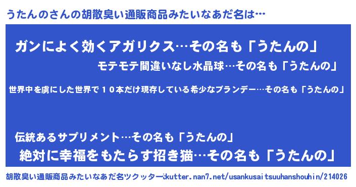 | 意味不明あだ名 | 『住所不定無職うたんの(93歳)』 |