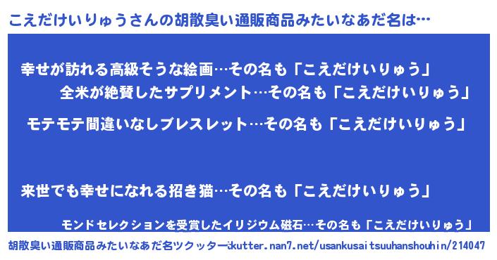 | ヒーロー風カッコイイあだ名 | 『スーパーコエダケイリュウ』 |