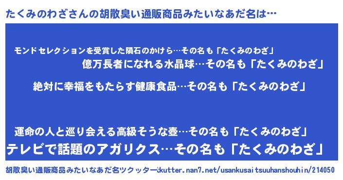 | 意味不明あだ名 | 『永久保存たくみのわざ』 |