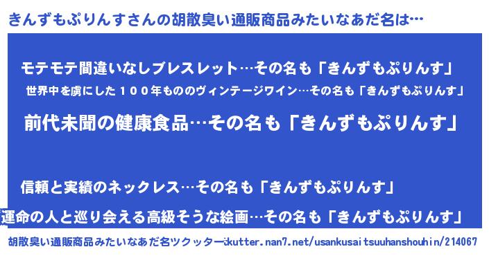 | 意味不明あだ名 | 『永久保存きんずもぷりんす』 |